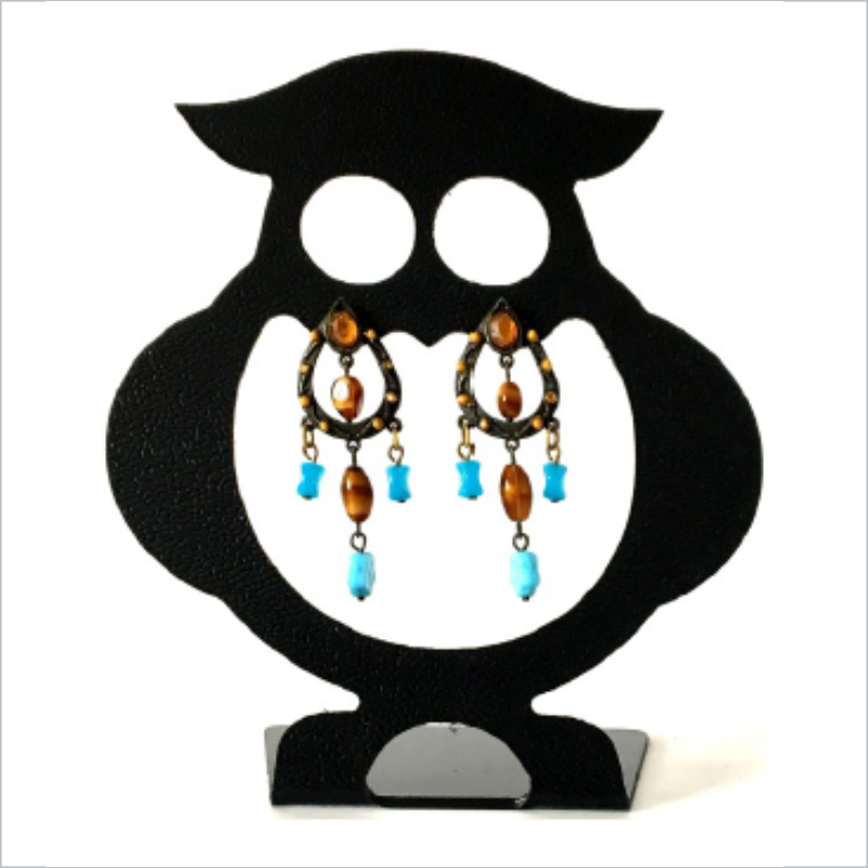 Expositor de Brincos, modelo Coruja, em veludo. Cor preta. Medidas larg: 12, alt: 17cm