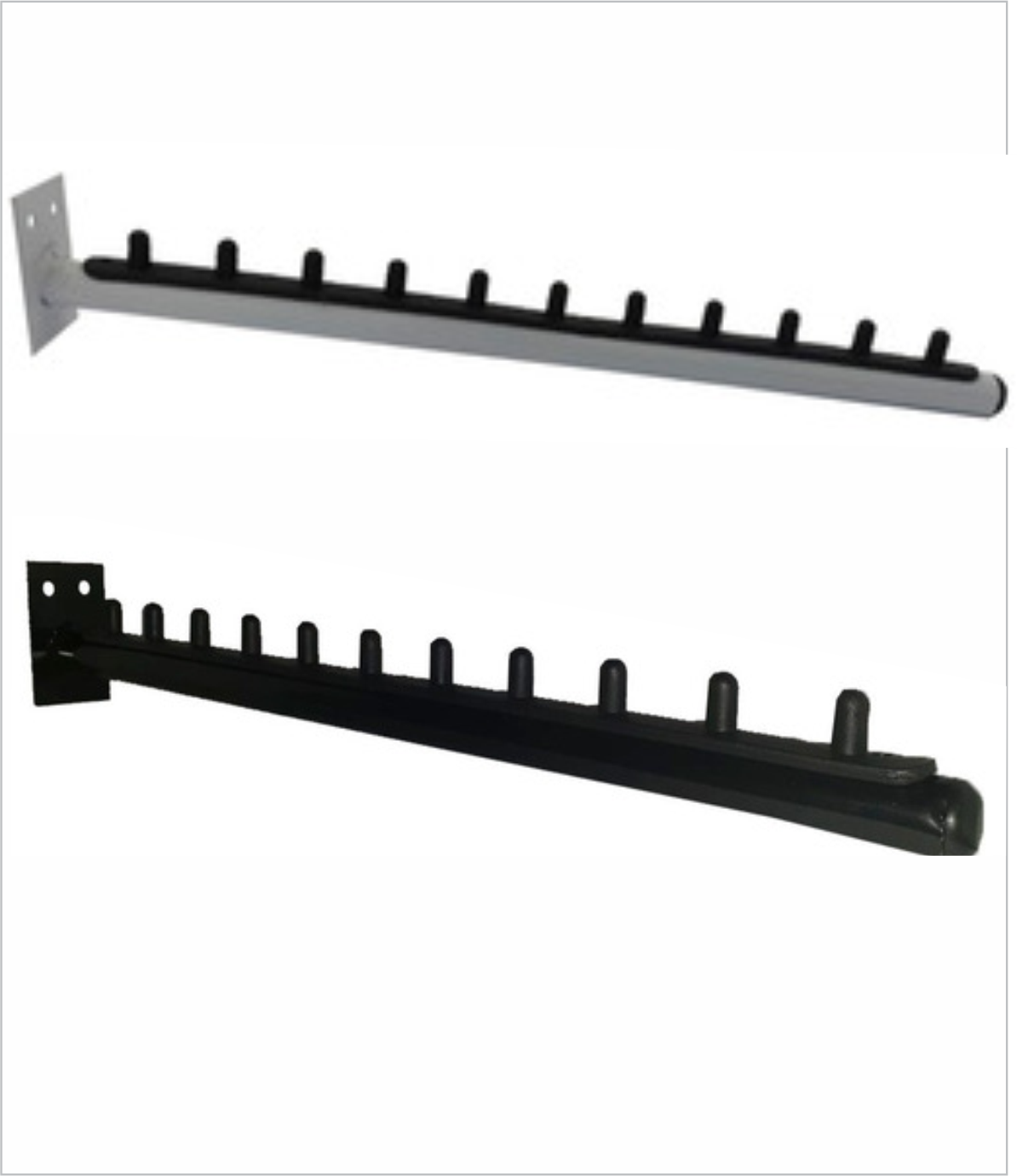 RT Cabideiro Frontal, de parede, Inclinado 10 pinos, modelo POP, com plastico. Preta e Branca